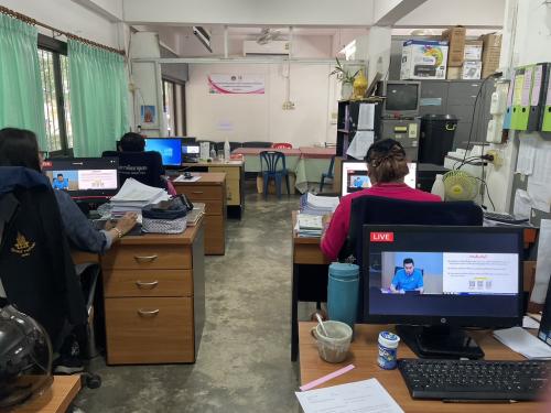?นางสาวอรุณลักขณ์ โพธิ์พุทธ พัฒนาการอำเภอเมืองพะเยา พร้อมทีมเจ้าหน้าที่สำนักงานพัฒนาชุมชนอำเภอเมืองพะเยา เข้าร่วมรับฟังการประชุมชี้แจง แนวทางการดำเนินงานที่สำคัญตามนโยบายและภารกิจของกรมการพัฒนาชุมชน ผ่านช่องทาง ทีวี พช. ณ สำนักงานพัฒนาชุมชนอำเภอเมืองพะเยา จังหวัดพะเยา